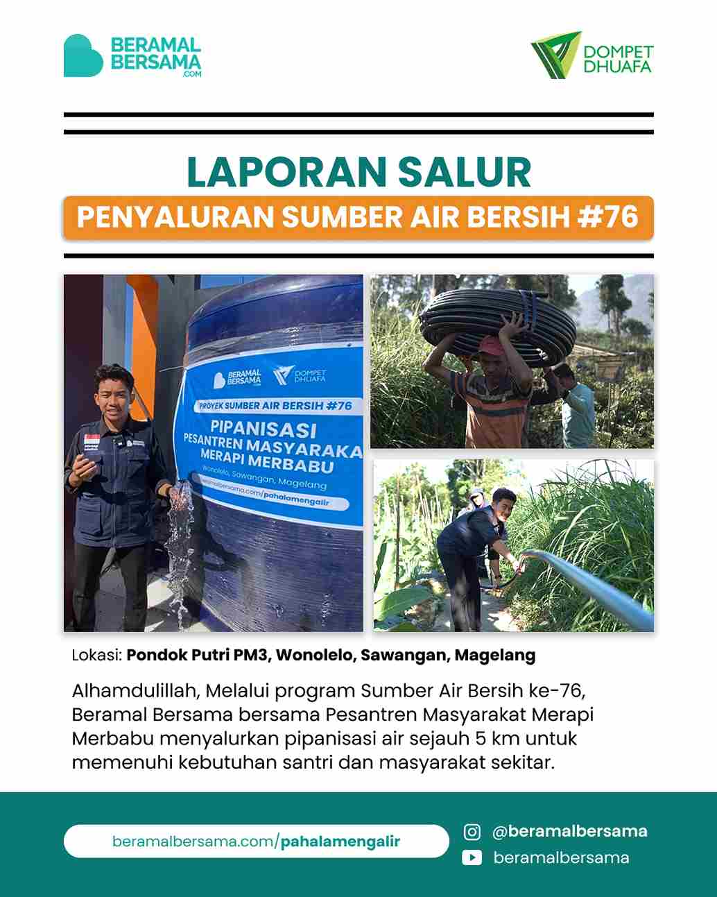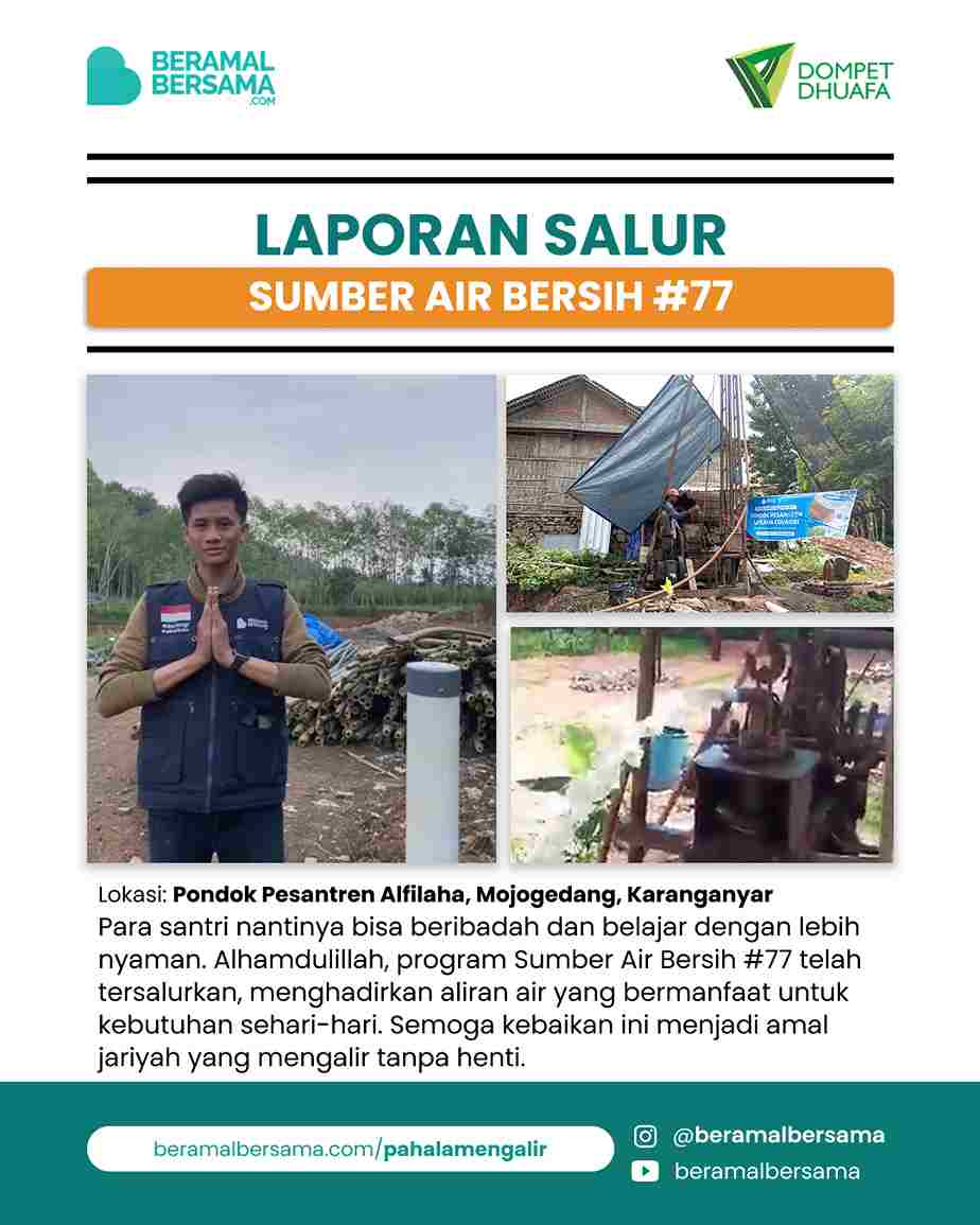 Alhamdulillah atas izin Allah SWT dan dukungan dari SahabatBeramal, kami telah menyalurkan sedekah Sahabat berupa sumber air bersih pondok pesantren