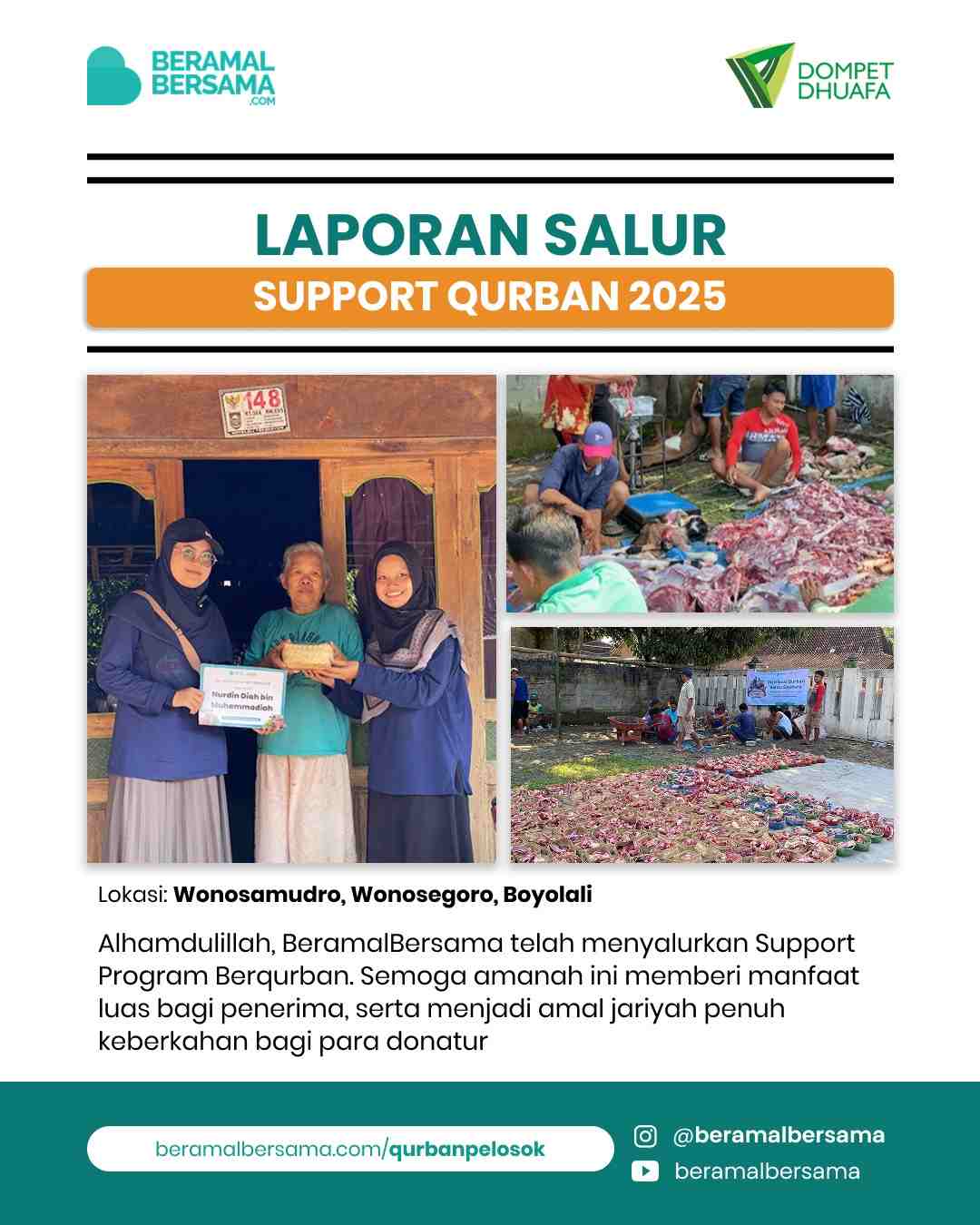 Alhamdulillah atas izin Allah SWT dan dukungan dari SahabatBeramal, kami telah menyalurkan sedekah Sahabat berupa 1 ekor kambing untuk Qurban 1446 H di Dusun Bendungan, Desa Gunungsari, Kecamatan Wonosamudro, Boyolali, Jawa Tengah