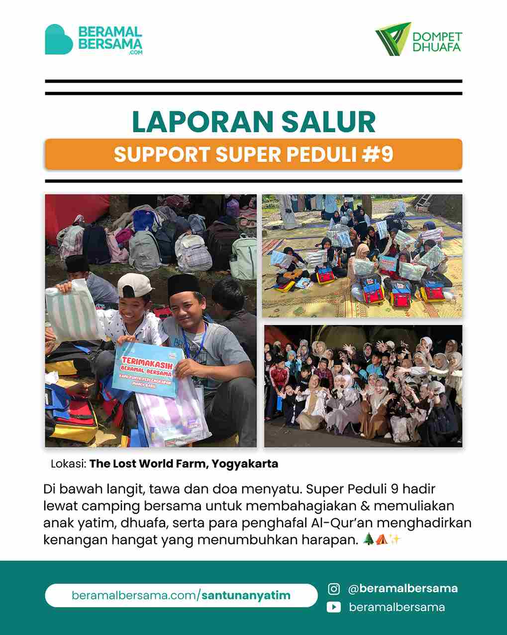 Alhamdulillah atas izin Allah SWT dan dukungan dari SahabatBeramal, kami telah menyalurkan sedekah Sahabat berupa 50 paket bahagia yatim di kegiatan Super Peduli #8 di Teras Merapi, Yogyakarta.