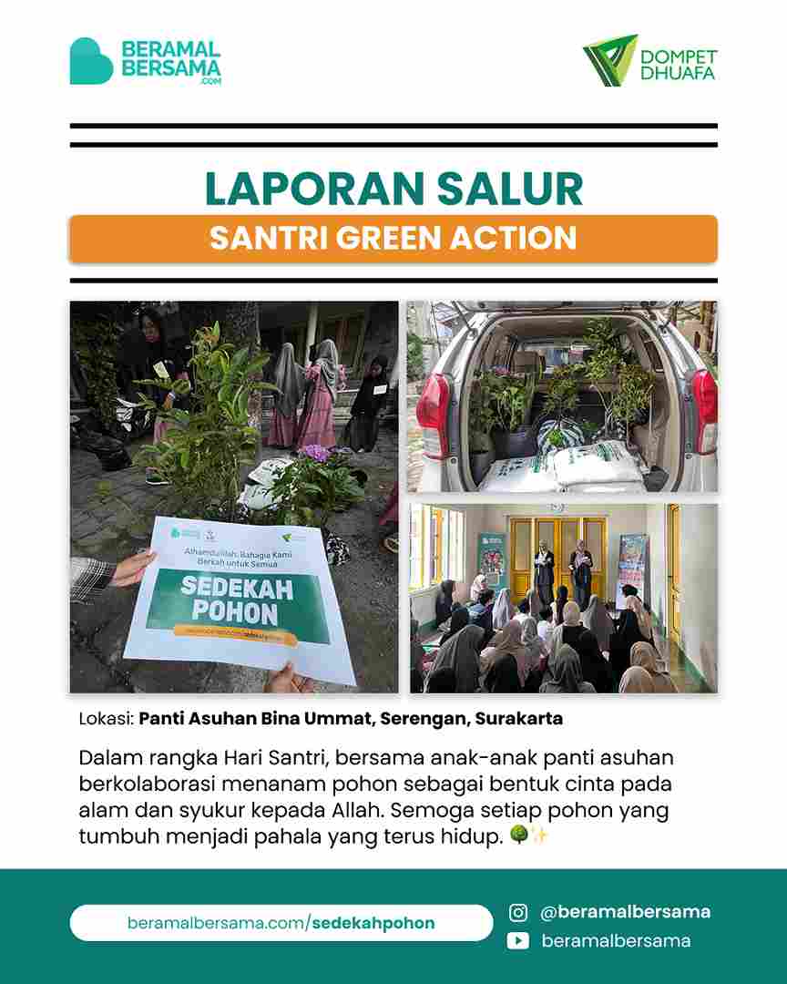 Alhamdulillah atas izin Allah dan dukungan dari sahabat beramal, Relawan telah menyalurkan sedekah pohon untuk masyarakat dan jamaah agar peduli lingkungan dan menjadikan rahmat seluruh alam